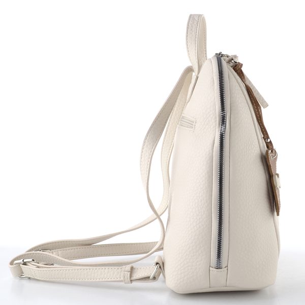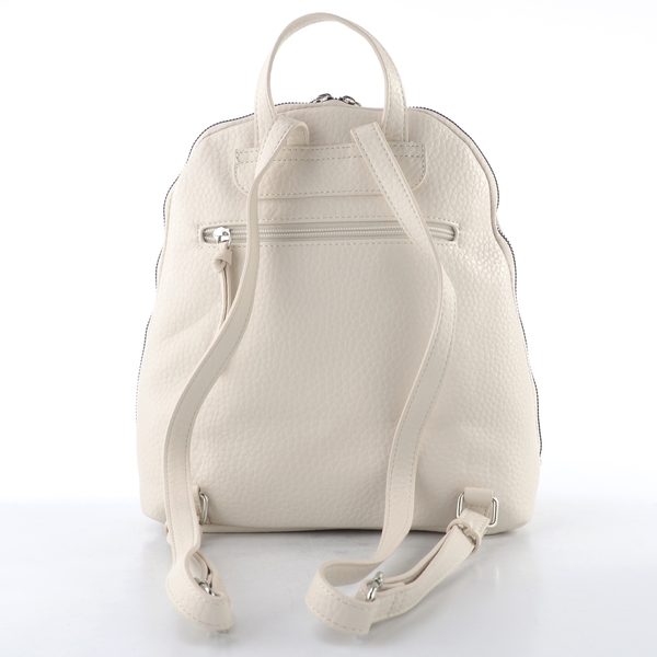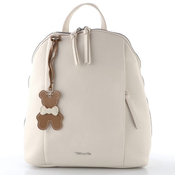 Stylový dámský městský batoh ve smetanové barvě s přívěškem ve tvaru medvídka.