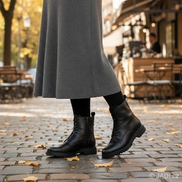 Dámský šněrovací kožený kotník v klasickém stylu a oblíbené černé barvě vybavený teplou podšívkou.