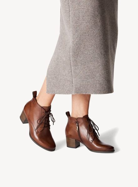 Tamaris kožený kotník na podpatku cognac 1-25131-43